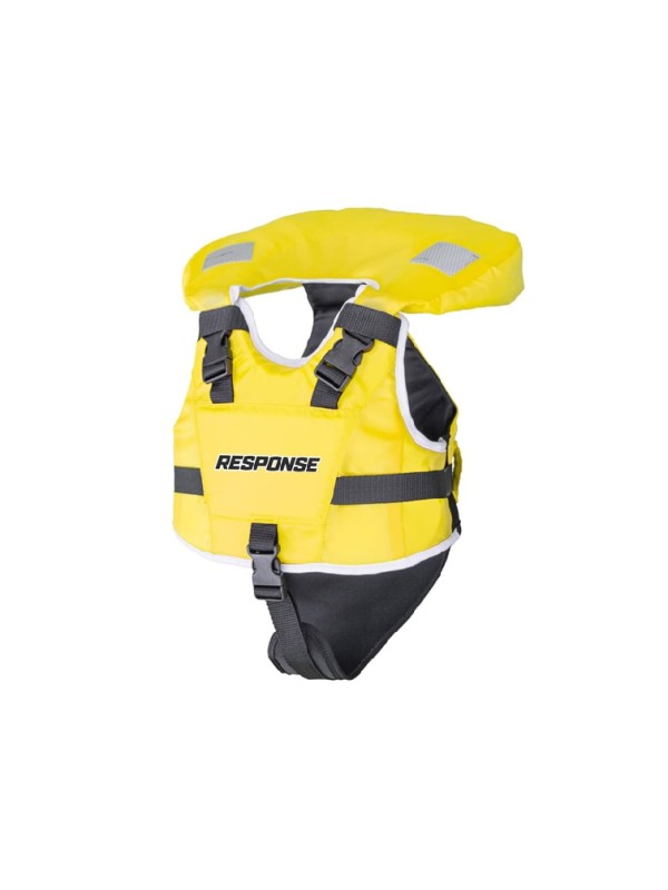 With the use of highly visible colours, reflective tape on the collar. Neoprene crotch strap. 3 adjustment points.